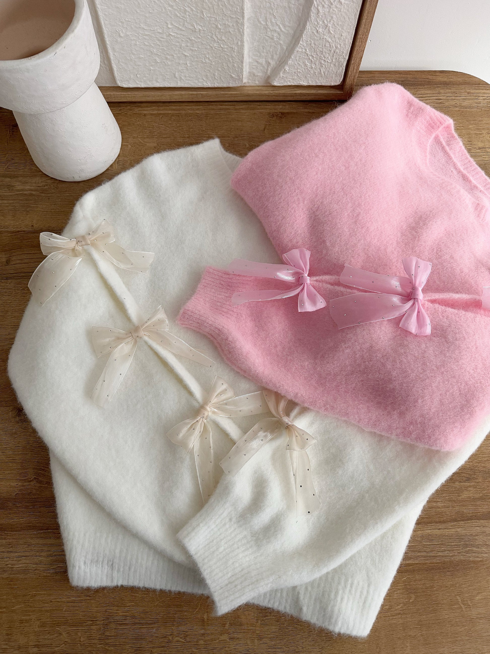 - Tulle and rhinestone bows